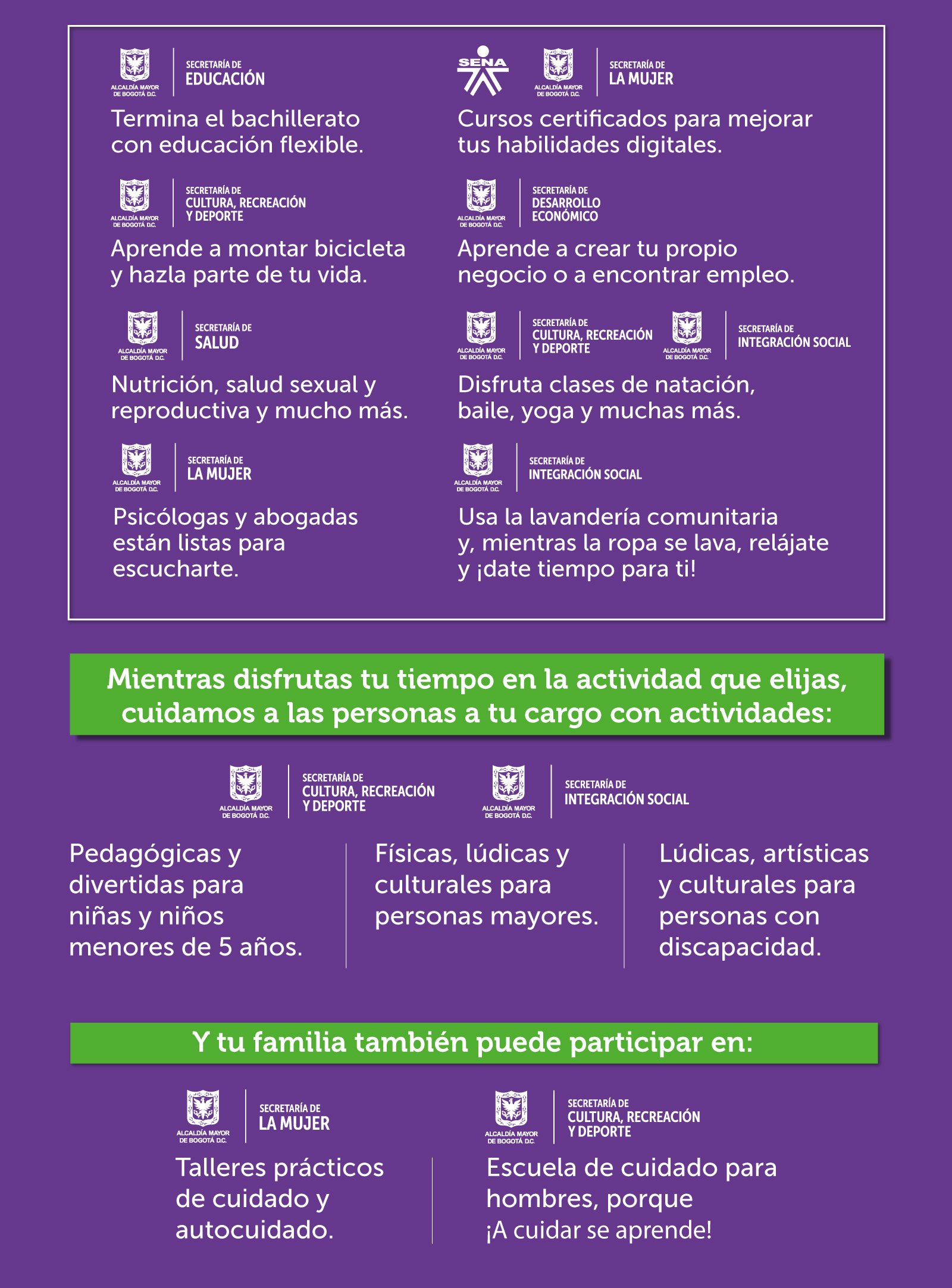 Consulta toda la oferta, programación, horarios y zonas en www.sistemadecuidado.gov.co