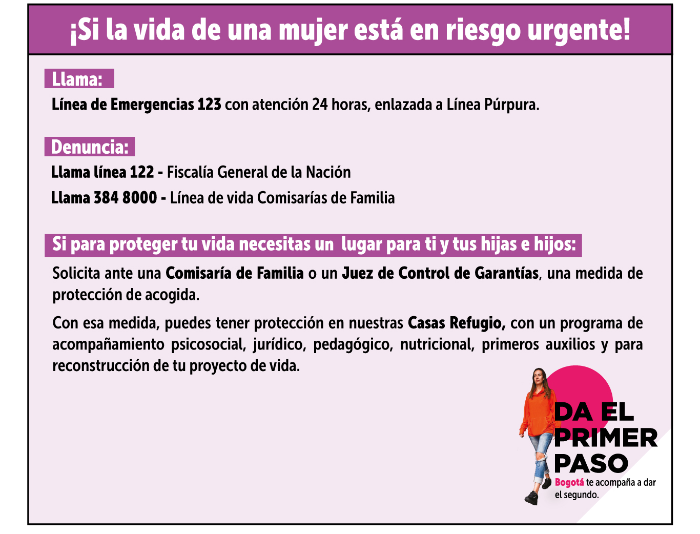 Conoce más en www.daelprimerpaso.sdmujer.gov.co
